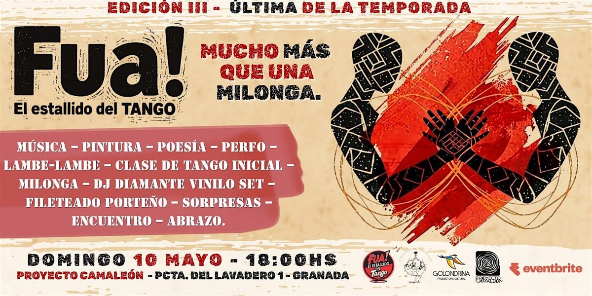 FUA! es un encuentro alrededor del tango para los que no bailan, los que ya bailan y también para los que nunca bailarían. Es una propuesta para las amantes de la música, los obsesionados con la poesía, las simpatizantes del teatro, los contempladores de la pintura y también para los que no.