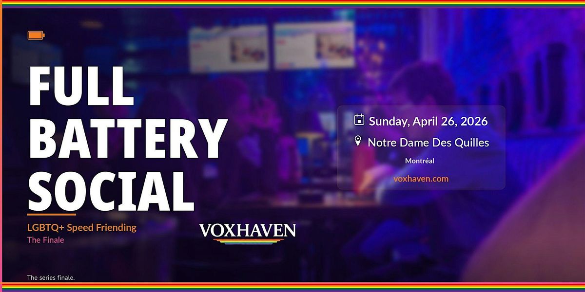 Full Battery Social est une soirée LGBTQ+ de speed-friending 100 % amitié, conçue pour rendre les connexions plus faciles. La soirée est calme, structurée et sans pression, avec des rondes de conversation guidées pour t’aider à rencontrer de nouvelles personnes sans vider ta batterie sociale.