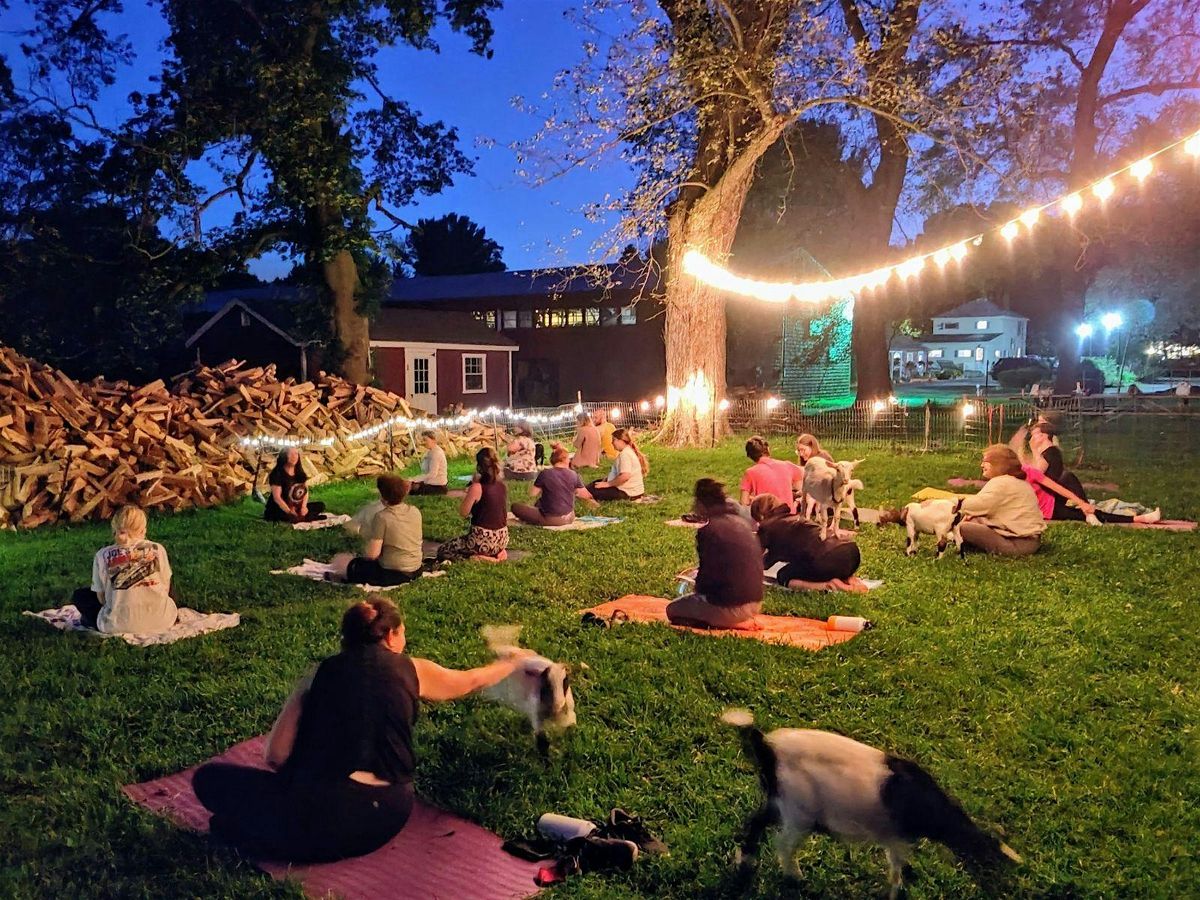 What better way to end your day? Join us at Chip-In Farm for a Full Blue Moon Goat Yoga class featuring our herd of friendly baby goats! Goat kids are naturally curious and playful, and our little goats love to cuddle.
