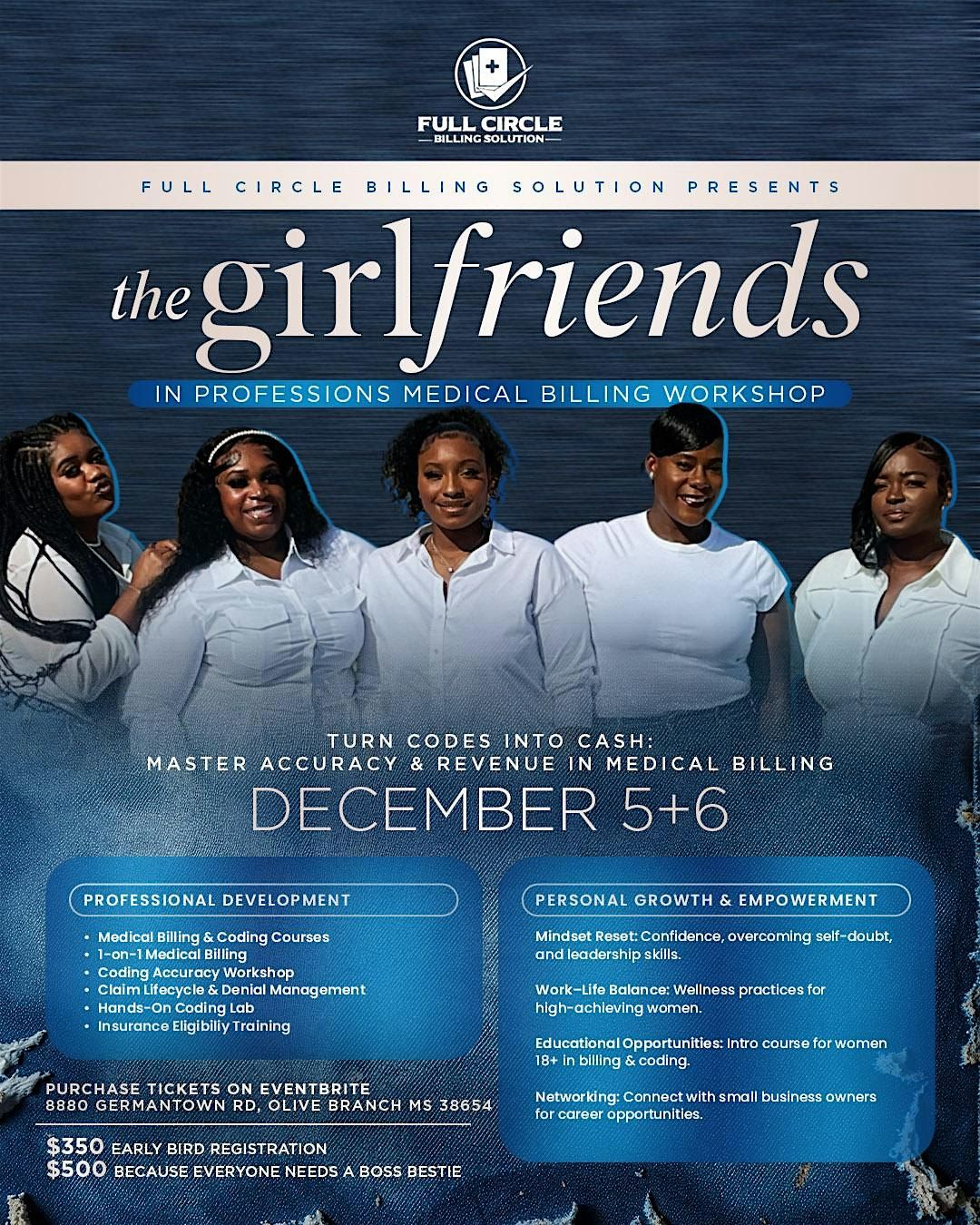 The Girl-Friends in Professions Medical Billing & Coding Workshop, presented by Full Circle Billing Solution, is a one-of-a-kind training and networking experience designed to educate, empower, and connect women working in the healthcare revenue cycle industry.