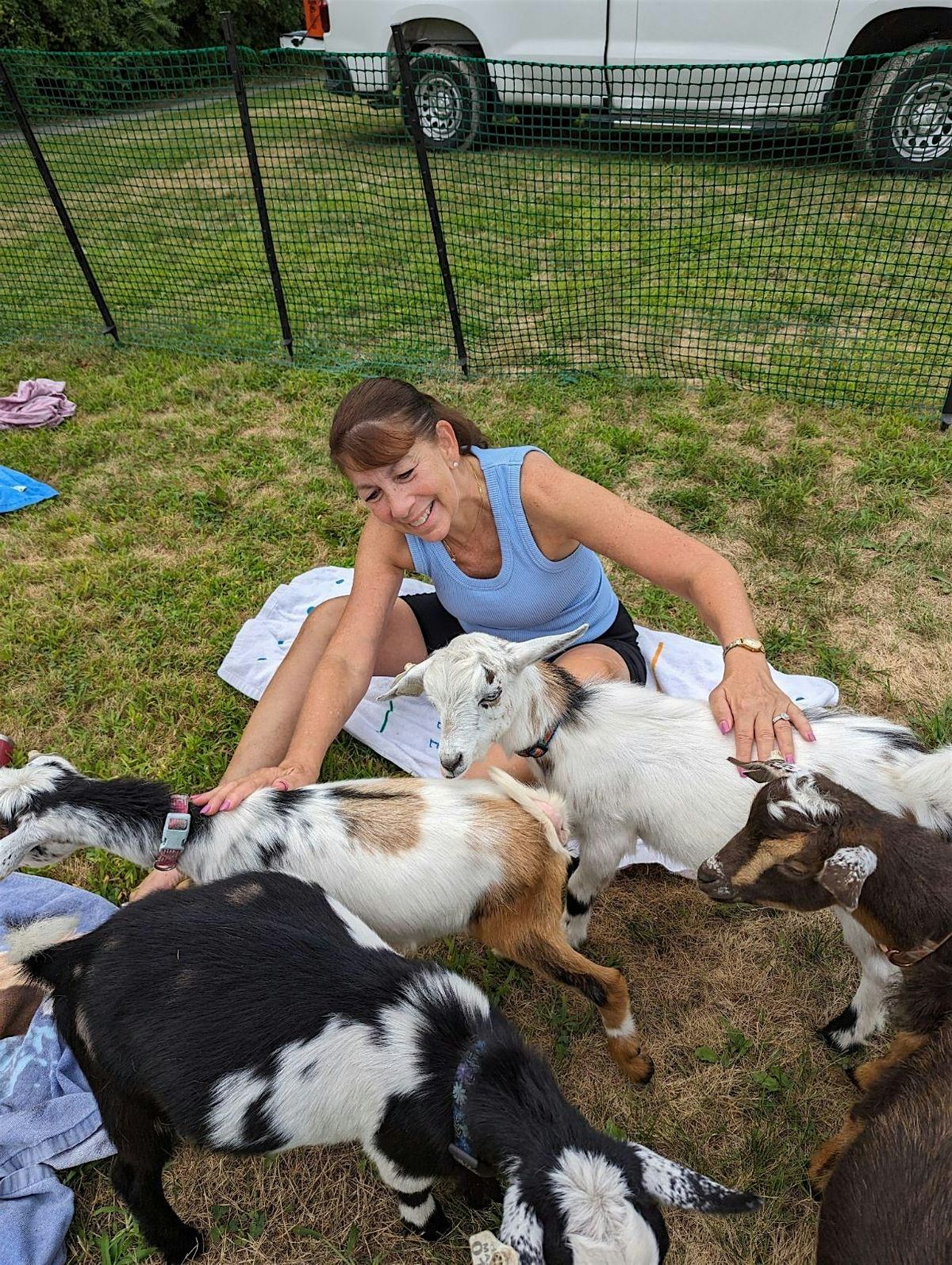 Bring your own mat, blanket, or towel but be prepared for the goats to potentially taste test everything!