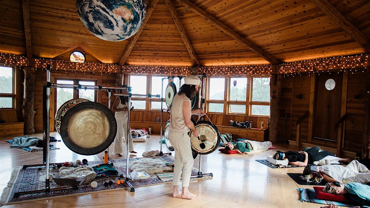 Then, restore in the healing vibrations of three gongs; 36” Brilliant Paiste Symphonic, 34” Vintage Paiste Symphonic, 32” Paiste Symphonic, 28” Paiste Bronze No. 9 and 21” Gongland Infinity Gongs. Allow the cosmic vibrations to release emotional blocks, open energetic channels and rebalance the nervous system as you relax deeply.