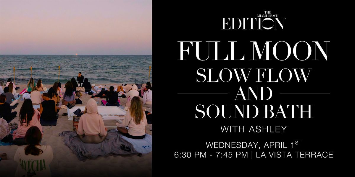 Experience a 75‑minute Full Moon Slow Flow and Sound Bath with senior instructor Ashley Boice, held directly on the beach for an immersive, oceanfront practice. Gentle, fluid movement and intentional breathwork lead into a restorative crystal‑bowl sound bath enhanced by the natural rhythm of the waves. This lunar‑inspired offering invites grounding, clarity, and mindful integration at The Miami Beach EDITION.