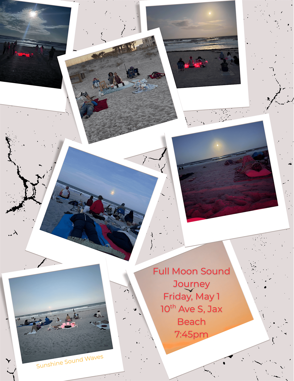 Under the glow of the full moon, you’re invited to soften, settle, and be held by sound and sea. Gentle waves meet layered tones and vibrations, creating a dreamy, immersive experience that feels both grounding and expansive. This is a space to unwind, release what feels heavy, and simply exist in the rhythm of the ocean and moonlight.