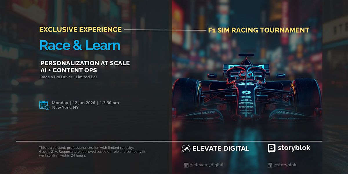Full-throttle personalization. Learn how AI meets content ops—and how to ship personalization at scale without content debt. We’ll cover the operating model that keeps brand integrity and governance intact, then run a live racing simulator tournament where drivers will get to race a pro (qualifiers → finals). You’ll leave with ideas to test drive.
