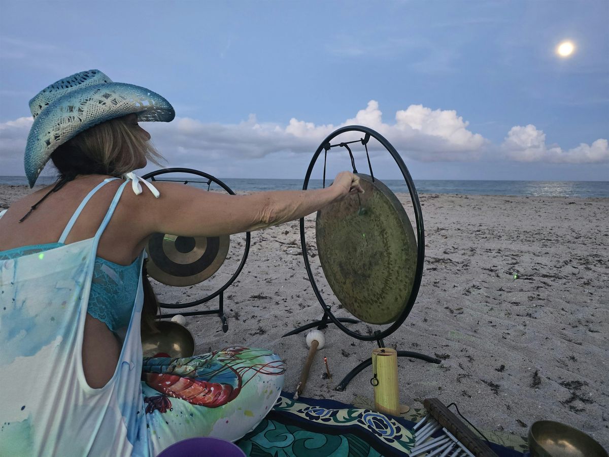 Escape the daily hustle and immerse yourself in a rejuvenating Meditation & Sound Bath experience on the beach. This serene event, set against the natural beauty of the ocean, is designed to reset your mind, body, and spirit under the powerful energy of the full moon. As the waves provide a rhythmic backdrop, you'll be guided through a spiritual journey accompanied by the soothing vibrations of sound healing instruments, such as crystal singing bowls, gongs, Native American flutes, and chimes.