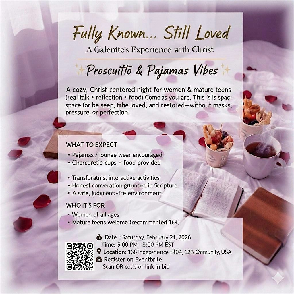Fully Known… Still Loved is a Christ-centered experience for women and mature teens who want to explore what it truly means to be known by God and loved without conditions—while enjoying a cozy, joy-filled evening designed to feel more like a girls’ night in than a formal church event.