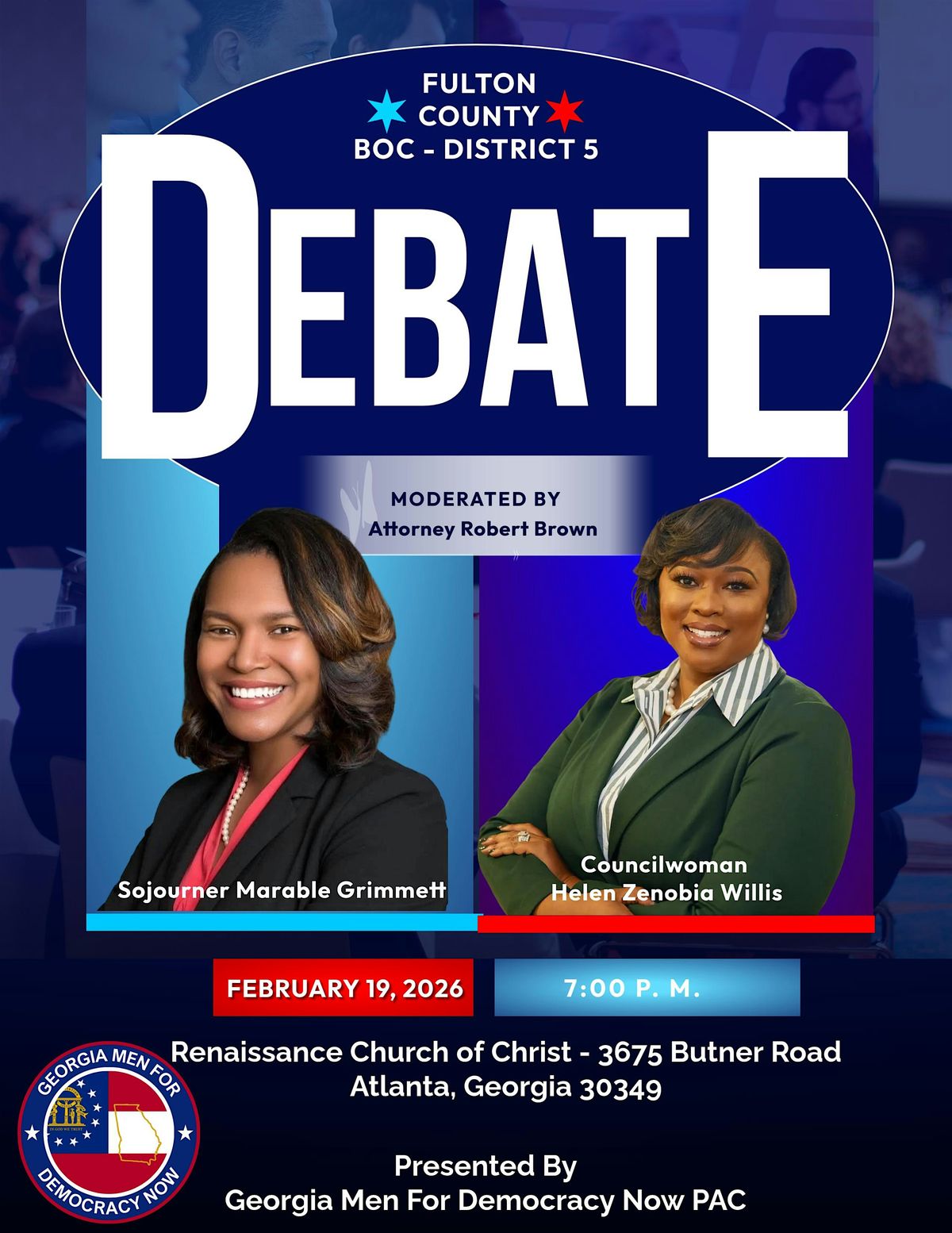 Join us in person for an engaging debate featuring candidates vying for the District 5 seat on the Fulton County Board of Commissioners. It's your chance to hear directly from those who want to represent you, ask questions, and get informed before voting! Don't miss this opportunity to connect with your community and learn more about local leadership.