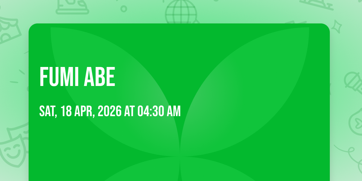 ? Location: 21.2772, -157.827✨ Discover the extraordinary at Fumi Abe, where magic meets reality in ways you've never imagined! ?️ Set in Blue Note Hawaii nestled in bustling Honolulu, HI, this event promises to be a landmark occasion. ? Taking place on April 18th, 2026 at 07:00 AM, it's going to create an atmosphere where every moment becomes a cherished memory. ? Immerse yourself in an experience crafted with attention to every detail, designed to surprise and delight at every turn. They have worked tirelessly to ensure this event exceeds all expectations, bringing together elements of entertainment, innovation, and pure joy. ? Don't miss your chance to be part of this remarkable journey!