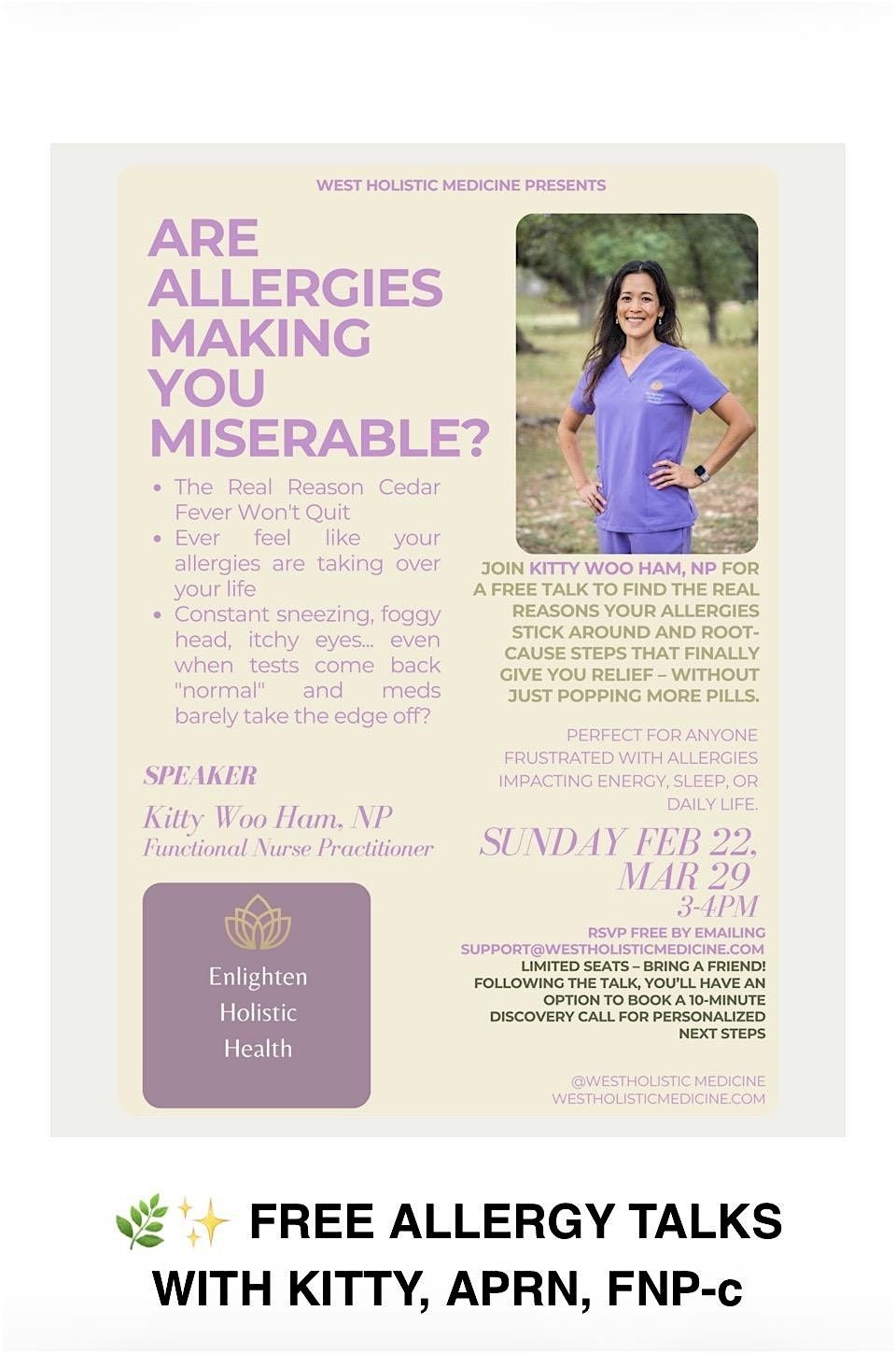 Join Kitty Woo Ham, Functional Medicine NP for a free talk to find the real reasons your allergies stick around and root-cause steps that finally give you relief – without just popping more pills.