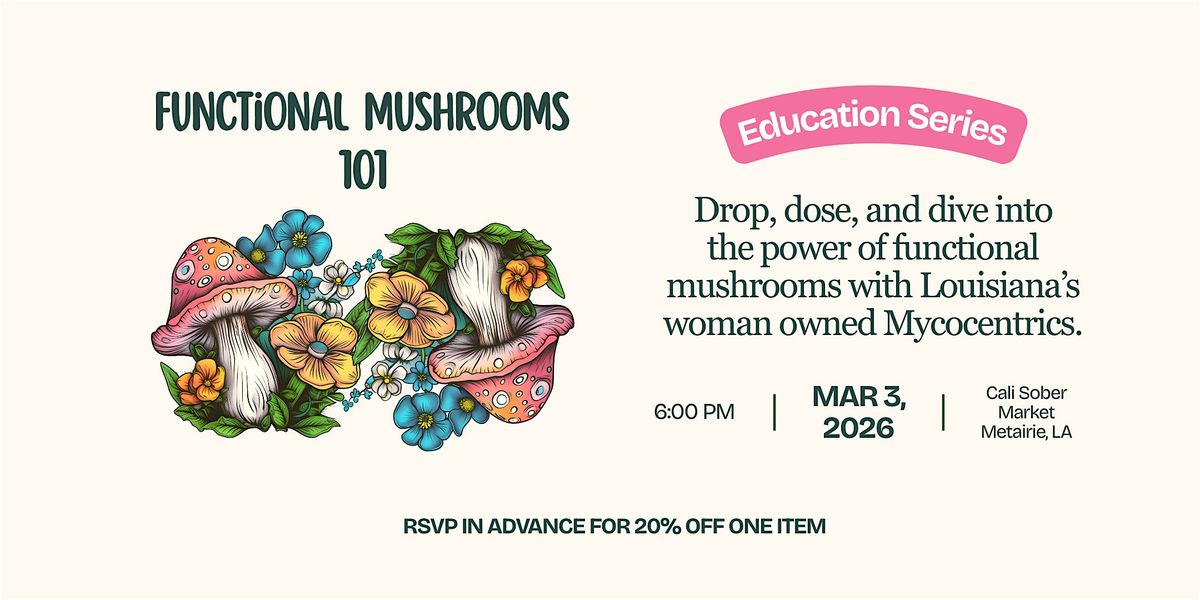 Ready to dive into the fascinating world of functional mushrooms? This in-person event is your perfect chance to learn all about these amazing fungi and how they can boost your health and wellness. Whether you're curious or already a mushroom fan, you'll get hands-on tips and insider knowledge straight from the experts at Mycocentrics. Don't miss out on a fun, relaxed session packed with cool info and good vibes!