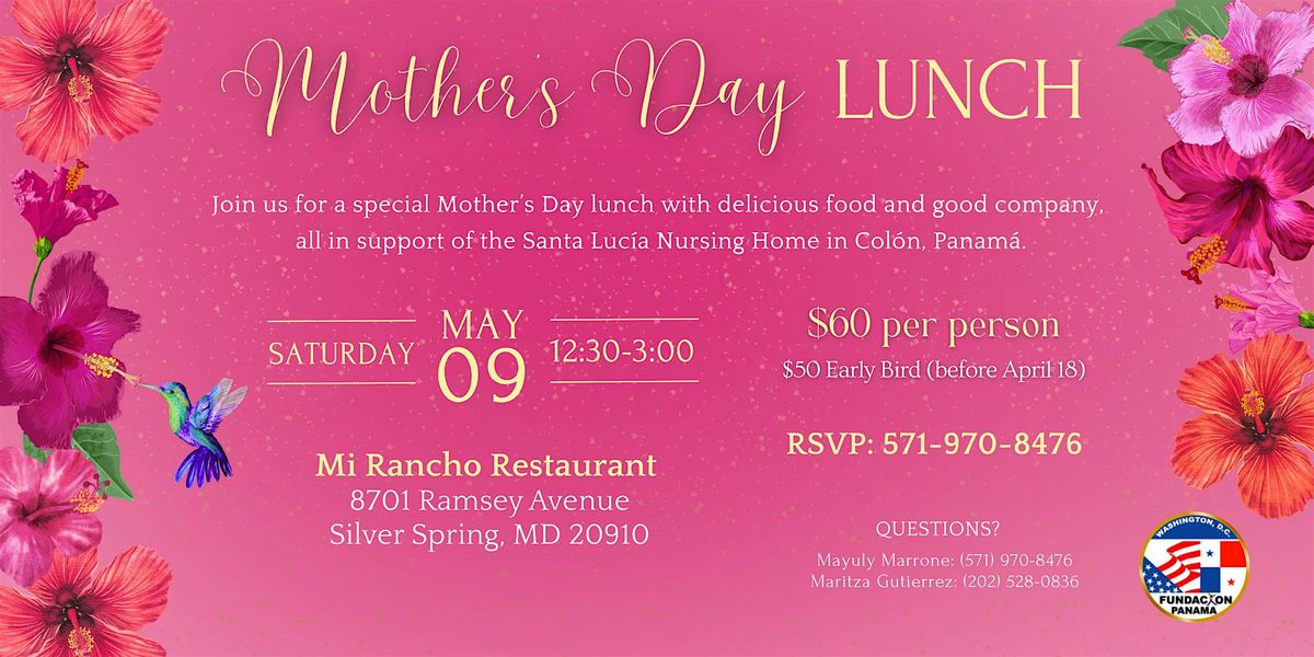 Celebrate Mother’s Day with a special lunch filled with delicious food, great company, and a meaningful cause. This event benefits the Santa Lucía Nursing Home in Colón, Panamá, helping support the care and wellbeing of its elderly residents. Join us for an afternoon of community, celebration, and giving back.