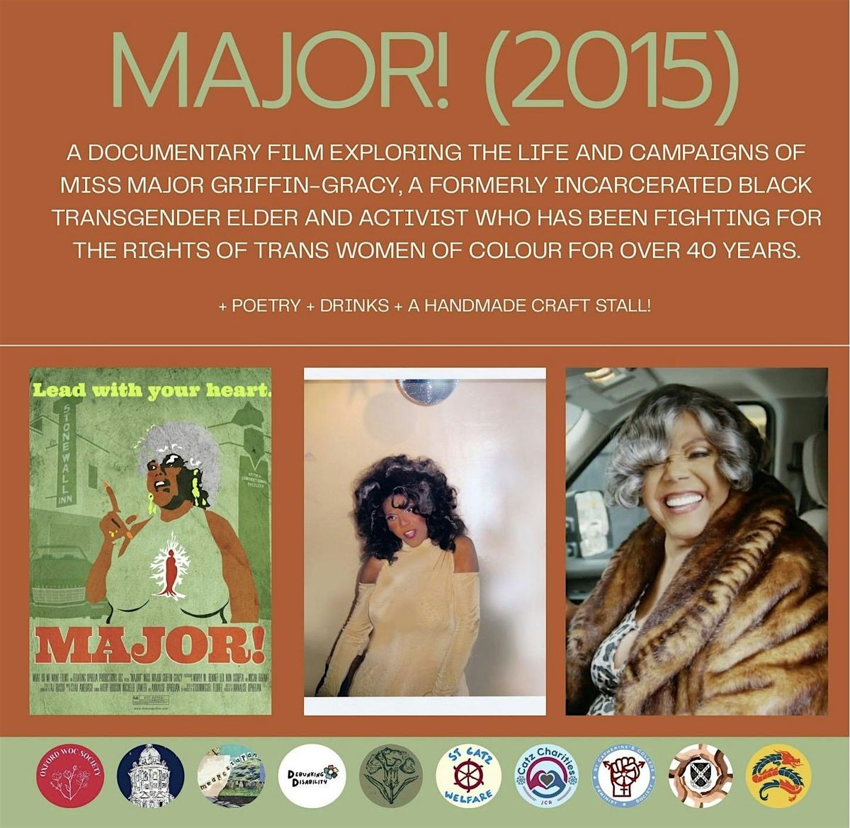 Info: Major! is a documentary film exploring the life and campaigns of Miss Major Griffin-Gracy, a formerly incarcerated black transgender elder and activist who has been fighting for the rights of trans women of colour for over 40 years.