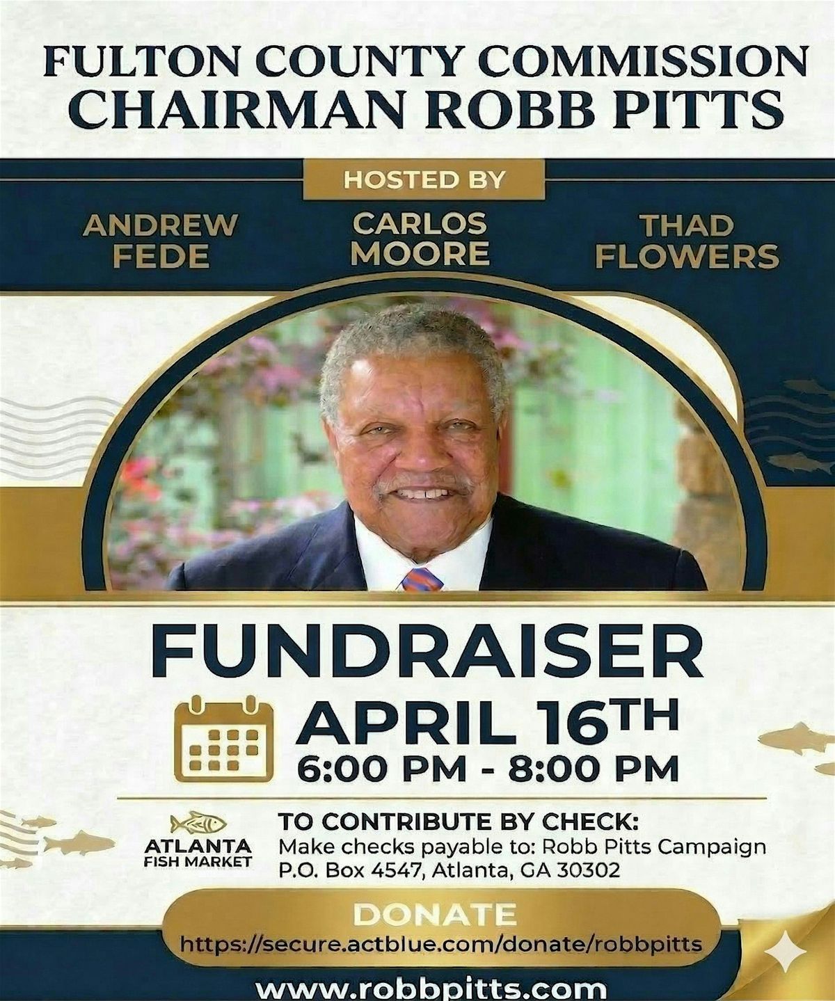 Join us at the Atlanta Fish Market on April 16, 2026 at 6:00 PM (Eastern Time) for a fun and casual evening to support Chairman Robb Pitts. It’s a great chance to connect, enjoy some good food, and make a difference in our community. Don’t miss out on this awesome event—see you there! (Hosted by Andrew Fede, Esq, Carlos Moore, Esq & Thad Flowers - views are our own)