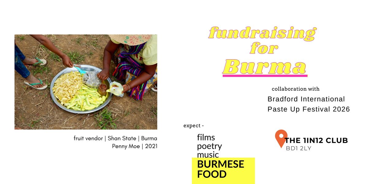Me an interesectional artist is exploring "the displacement" for what it means to me individually as well as collectivetly for some years now. Part of it and to fundraise for the country - I am curating a heartwarming evening filled with films, poems around lived experiences of displacement, music to dance to - and importantly Penny's Pantry Burmese Vegan yummy scran are back to the club.
