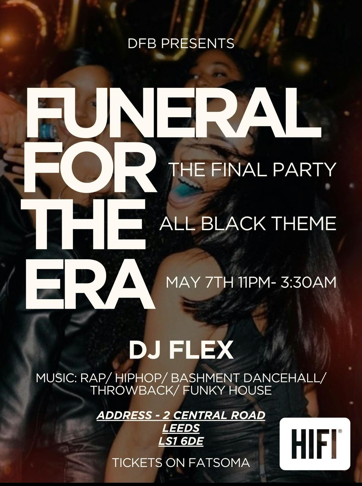 Funeral for the Era will be the last event DFBPROMOTIONS hold. Expect the usual- the best vibes, the best music, and the best themes. Since this is the last event we want you all to go crazy and go out with a bang.Theme:ALL BLACK