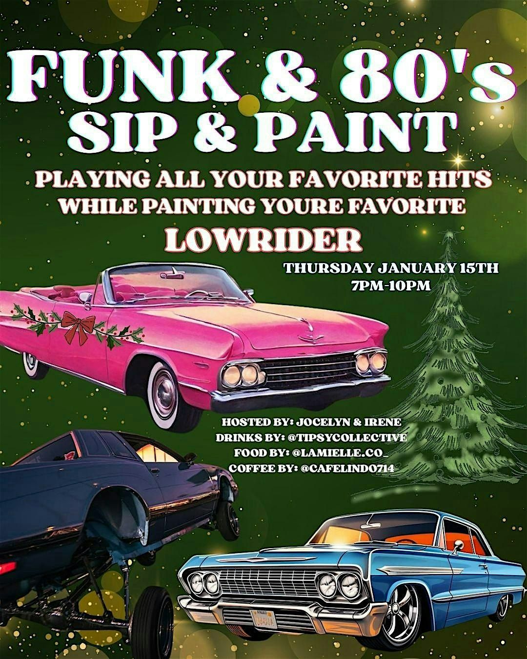 We’re turning Thursday night into a full-on Funk & 80’s throwback while we paint an iconic lowrider and vibe to the classics. Get ready for a night filled with color, music, and good energy!