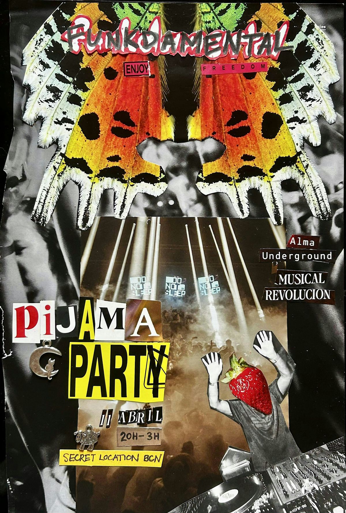 Para mantener el ambiente underground, hemos preparado un cartel secreto. No sabrás quiénes tocarán ni a qué hora hasta que llegues a la fiesta. Ven a pasar un buen rato garantizado, no a ver a un cabeza de cartel.