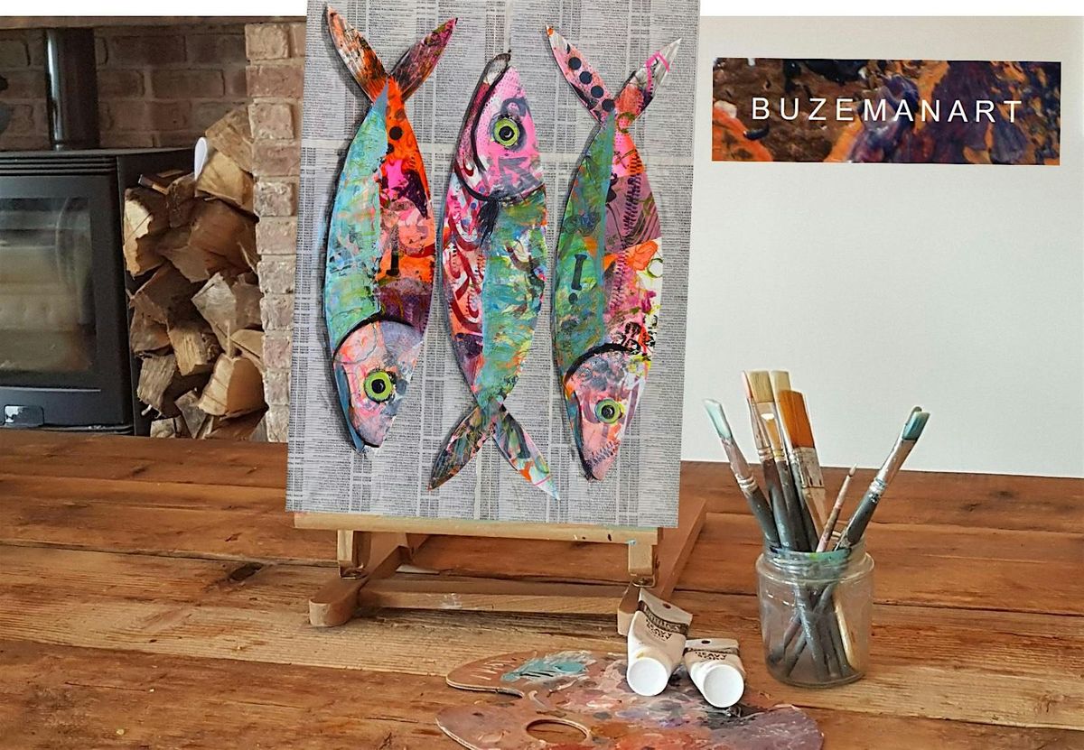 Grab some paint, tear some paper, make a mess (the good kind). In this fun, no-pressure workshop we’ll create bright, quirky fish using paint, collage, and whatever marks feel right in the moment.
