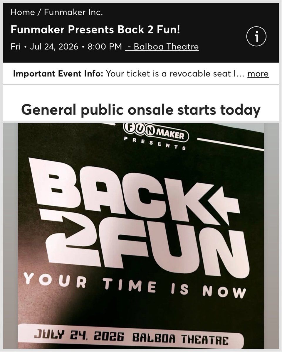🌟 Journey into wonder at Funmaker at Balboa Theatre - San Diego, where extraordinary experiences await around every corner! 🏛️ Set against the backdrop of Balboa Theatre - San Diego in dynamic San Diego, CA, this event promises to exceed all expectations. 📅 Join us on July 24th, 2026 at 08:00 PM for a celebration that combines innovation, entertainment, and community spirit in perfect harmony. ✨ There will be an atmosphere where memories are made and stories come alive, ensuring every guest experiences something truly remarkable. 🎊 This is more than just an event; it's a journey into the extraordinary!