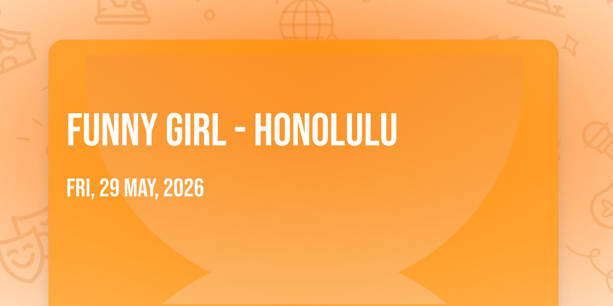 📍 Location: 21.2706, -157.803🎉 Welcome to Funny Girl - Honolulu, where dreams come alive and possibilities are endless! 🏛️ Join us at Diamond Head Theatre in the heart of Honolulu, HI for an event that defies expectations. 📅 On June 7th, 2026 at 05:30 AM, be part of something truly extraordinary as we bring together innovation, entertainment, and pure magic. ✨ Every aspect has been carefully designed to ensure an unforgettable experience for all our guests. Whether you're seeking adventure, inspiration, or simply a break from the ordinary, this event promises to deliver beyond your wildest dreams. 🎊 Prepare for a journey into the extraordinary!