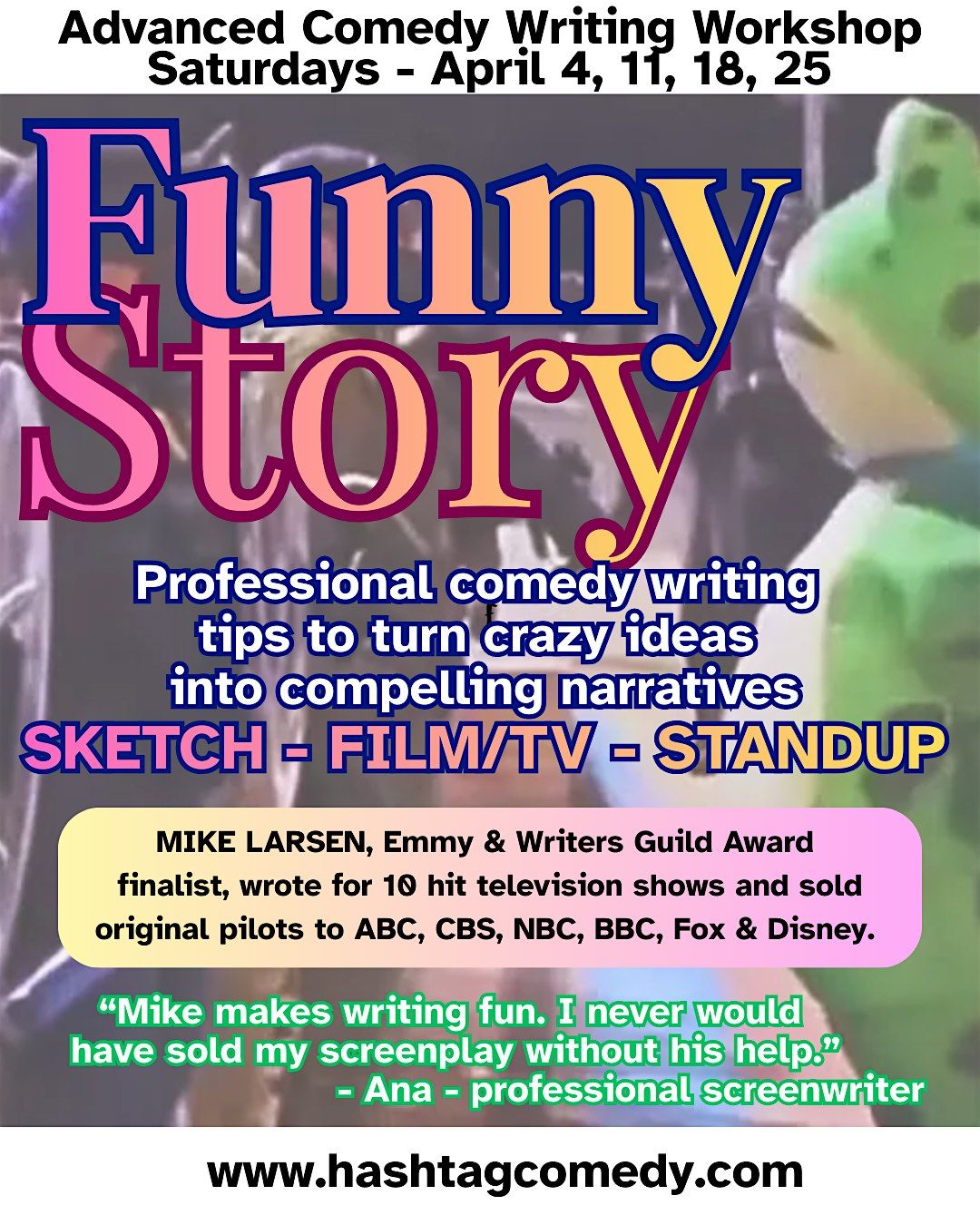 This class is for students who've taken Mike's joke writing workshops, or experienced comedians or writers. Class will run for 4 consecutive Saturdays starting April 4th - April 25th, from 10 AM - 1 PM.