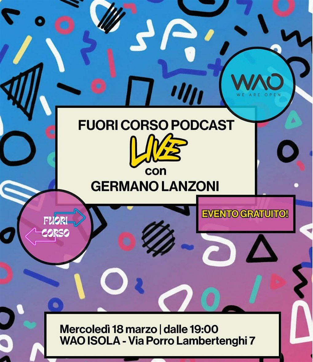 Mercoledì 18 marzo alle19 Fuori Corso Podcast torna live da WAO Isola con una puntata speciale! Ospite e protagonista dell’intervista sarà Germano Lanzoni