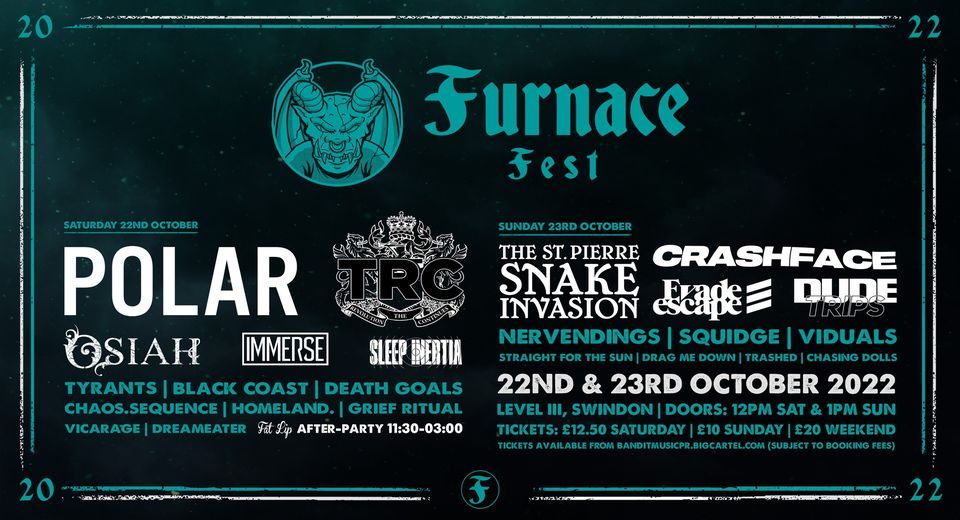 *FURNACEFEST 2022 IS POSTPONED UNTIL FURTHER NOTICE - NEW DATE TBA IN DUE COURSE*BANDIT MUSIC PROUDLY PRESENTS