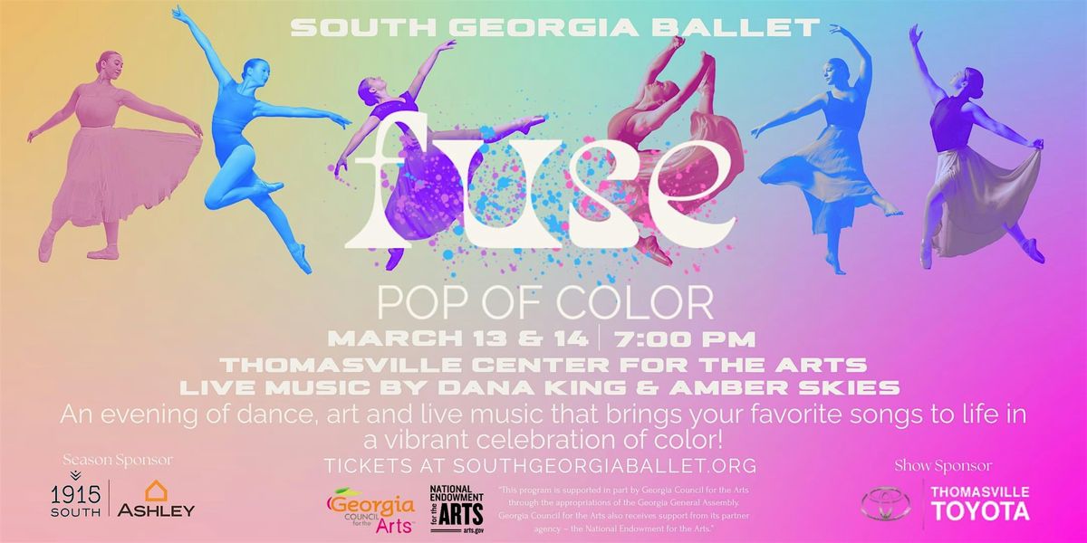 FUSE: Pop of Color is a high-energy dance experience celebrating bold creativity, individuality, and vibrant expression. Featuring original choreography, this dynamic performance comes alive with live music by Dana King and Amber Skies, creating an immersive concert-meets-dance atmosphere.