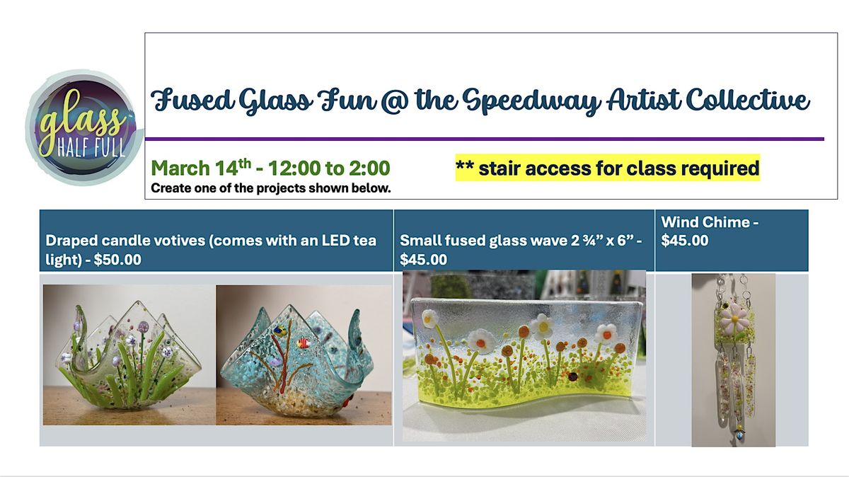 Join us at SPEEDWAY ARTIST COLLECTIVE for a afternoon of creativity and community. Let's get together and create beautiful fused glass pieces. No experience needed - Janette will guide you every step of the way. Bring your friends and unleash your inner artist! Don't miss out on this opportunity to make something special.