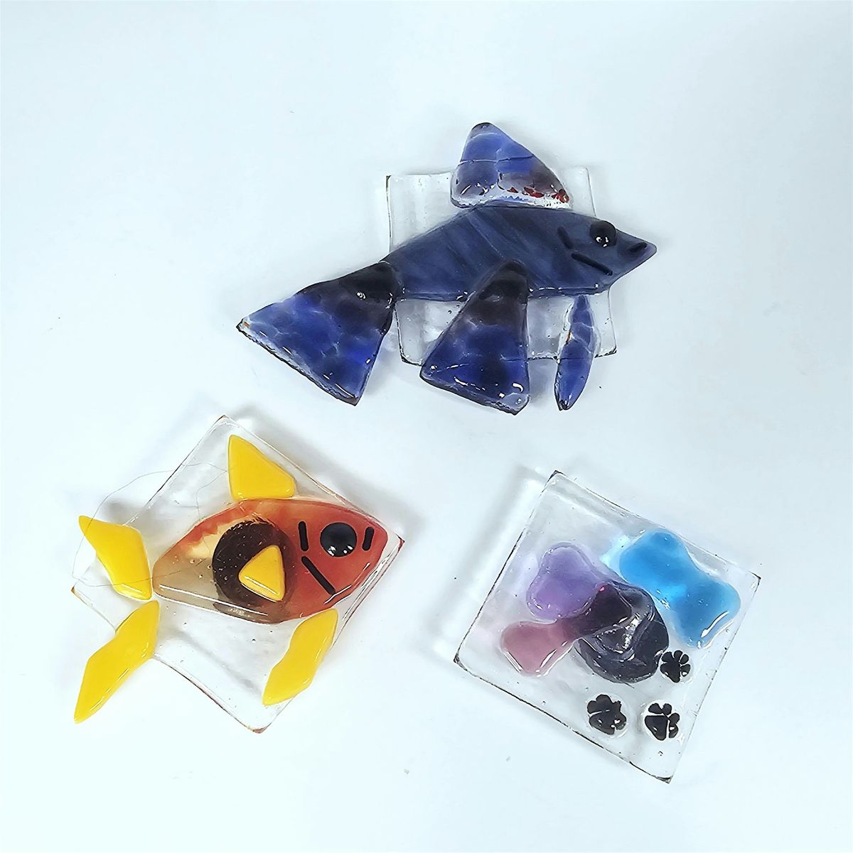 We'll use mosaic glass nippers and speacial glass designed for fusing in a kiln to create our own sets of three 2" square magnets. During the class, you'll learn to cut and shape the glass and glue it down so that it will be ready to fire in the kiln. Your projects will need to be picked up at a future date after they have been fired, which will take about a week from the date of this class.