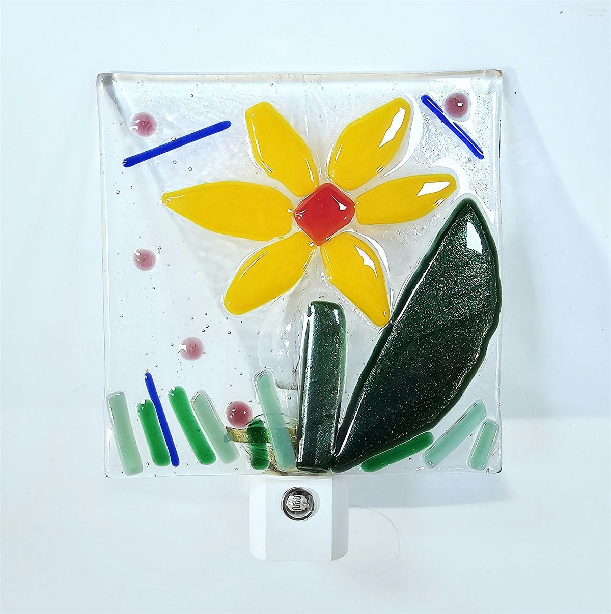 We'll use mosaic glass nippers and special glass designed for fusing in a kiln to create our own 4x4" nightlights. During the class, you'll learn to cut and shape the glass and glue it down so that it will be ready to fire in the kiln. Your projects will need to be picked up at a future date after they have been fired, which will take about a week from the date of this class.