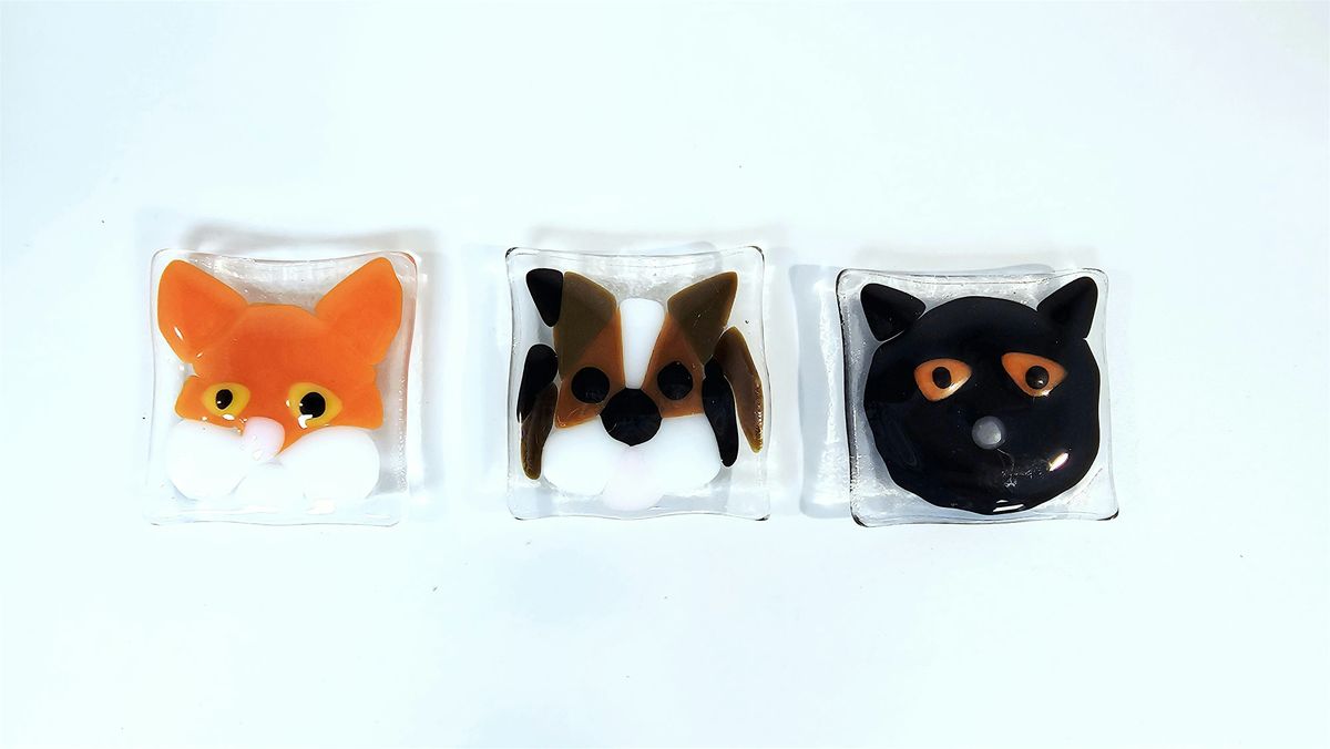 We'll use mosaic glass nippers and speacial glass designed for fusing in a kiln to create our own sets of three 2" square magnets. During the class, you'll learn to cut and shape the glass and glue it down so that it will be ready to fire in the kiln. Your projects will need to be picked up at a future date after they have been fired, which will take about a week from the date of this class.