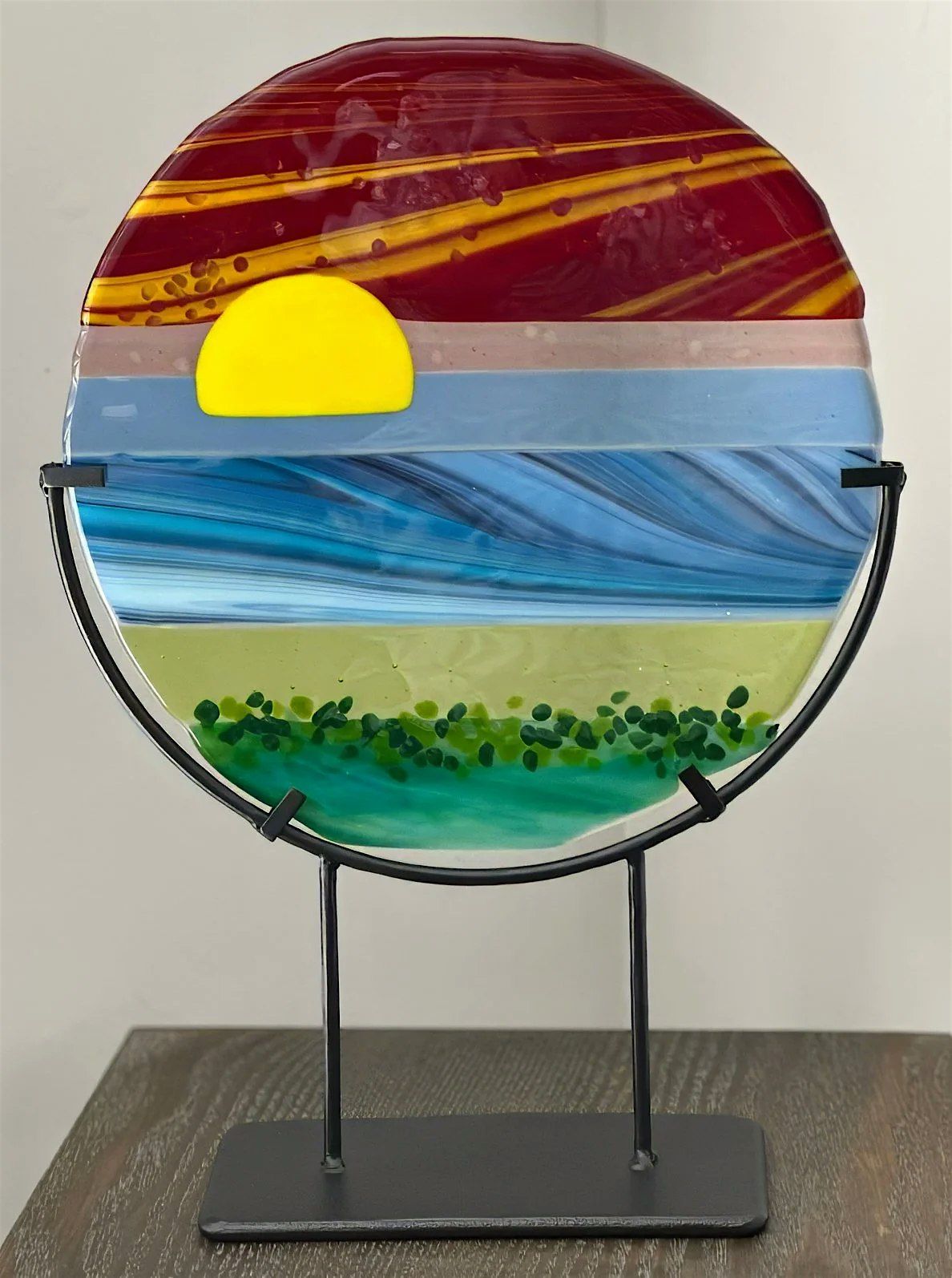 Create your own vibrant 10” round fused glass Sunrise-Sunset in this fun, hands-on workshop—no experience needed! You’ll design a colorful glass piece inspired by the beauty of spring, then watch it transform through the magic of the kiln.