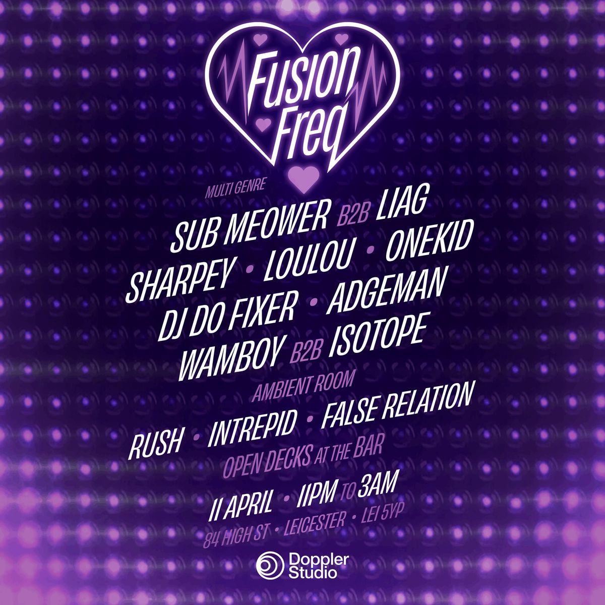 FUSION-FREQ w OPEN DECKS + ambient room Who are we? well, it's in the name, a fusion of frequencies, a melting pot of multi-genre bass music.