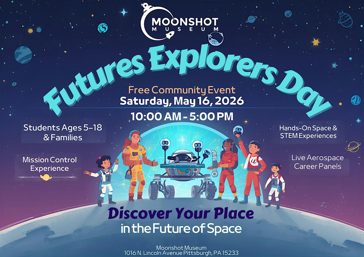 Join Moonshot Museum for Futures Explorers Day, a free, high-energy, hands-on celebration designed to help students and families discover exciting careers connected to the future of human space exploration. For one inspiring Saturday from 10:00 AM to 5:00 PM, the museum will transform into an interactive hub of creativity, innovation, and career exploration for learners from Pre-K through 12th grade.
