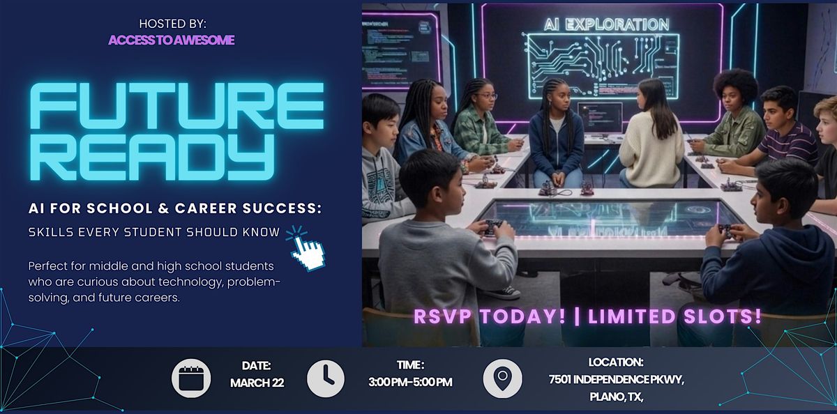 Join the for a hands-on AI workshop designed for middle and high school students. This interactive session introduces students to AI tools for text, images, and video, includes live demonstrations, a prompt-building exercise, and group activities designing websites or apps.