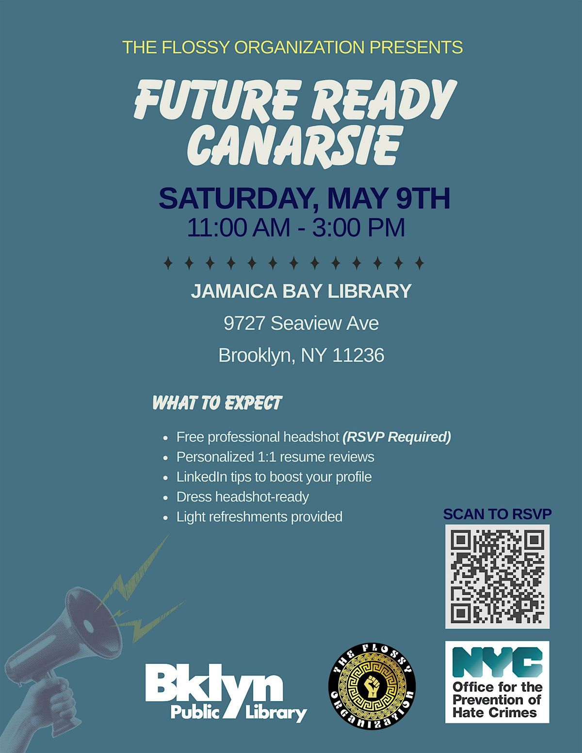 Join us for Future Ready Canarsie, a free, in-person event designed to help students, job seekers, and community members build confidence and take the next step in their career journey. Receive personalized 1:1 resume support, LinkedIn tips, and connect with valuable local resources in a welcoming community setting. Free professional headshots are available with RSVP—reserve your spot in advance to secure your session!