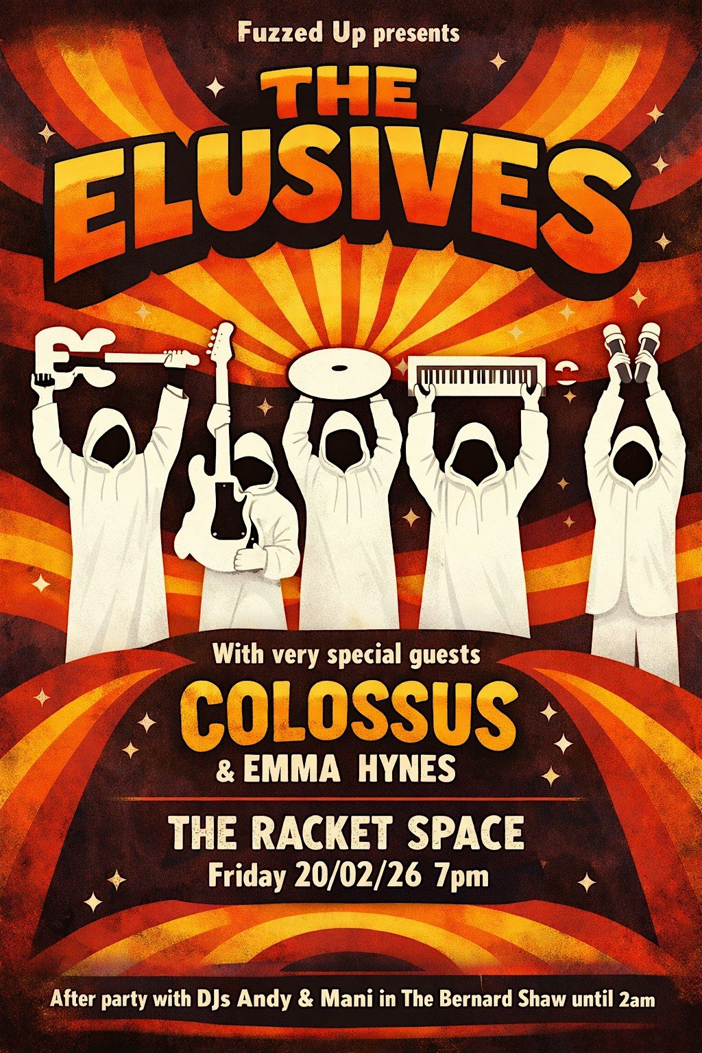 The Elusives headline this months Fuzzed Up club night with Collosus & Emma Hynes on the bill.After party with DJs until 2am.