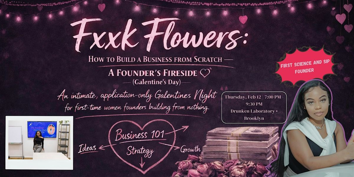 A free, application-only Galentine’s Day business event for first-time women founders starting from zero. Join an intimate fireside chat, guided discussion, and high-touch workshop focused on building a business without fluff, funding, or filters.