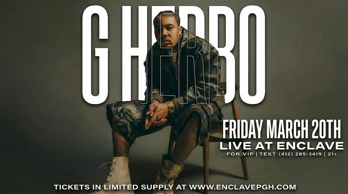 G Herbo LIVE at Enclave in Pittsburgh on Friday, March 20th, 2026 - (1602 E Carson St, Pittsburgh, PA). Pop bottles with G Herbo from 9PM–2AM.