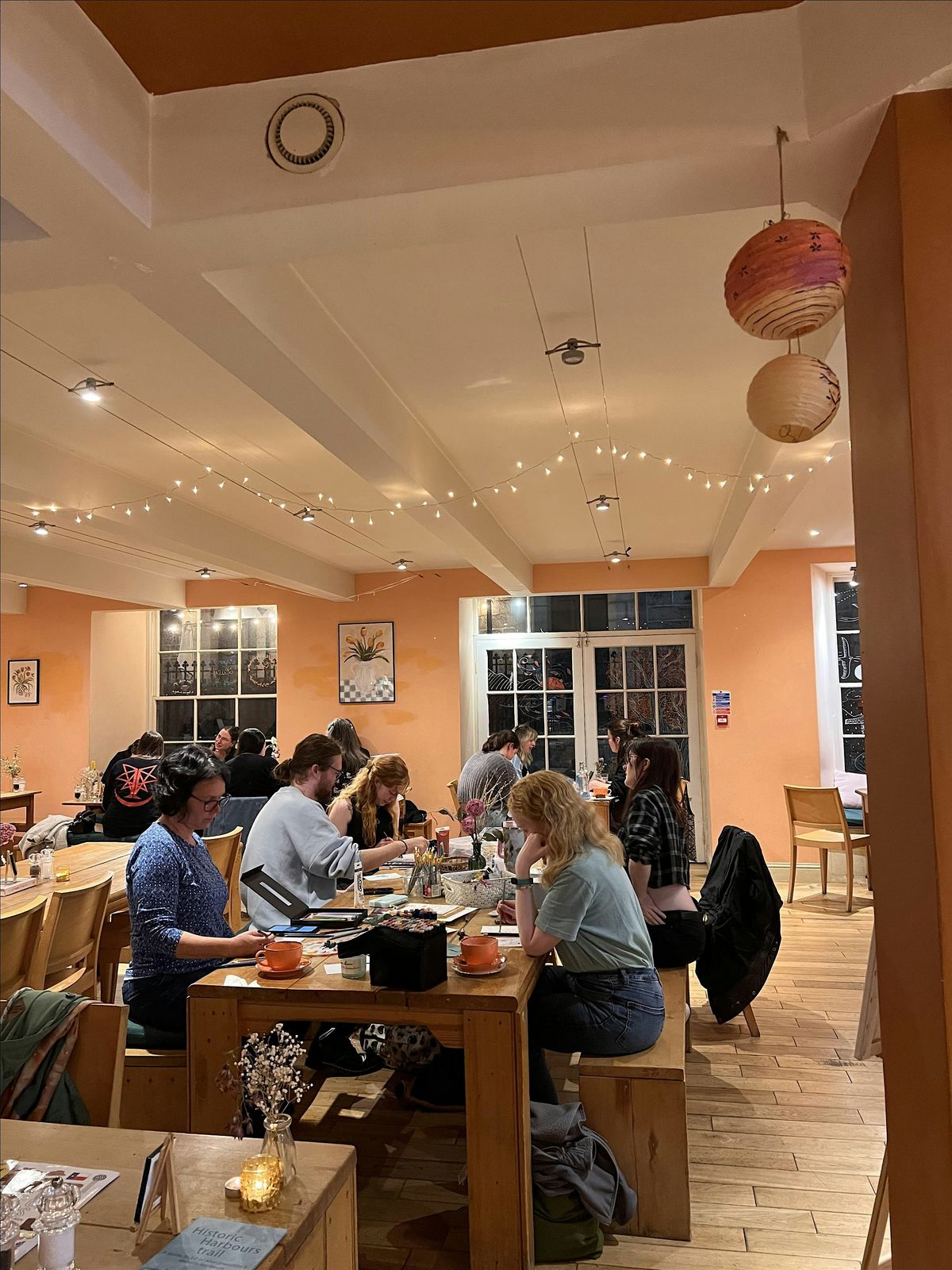 Have you been to our crafts night yet? Once a month, our wee community gets together to do some arts and crafts ! Whether you do some of the activities you bring or come with your own, it is a lovely, very cosy and warm gathering where people have nice drinks and lovely company.