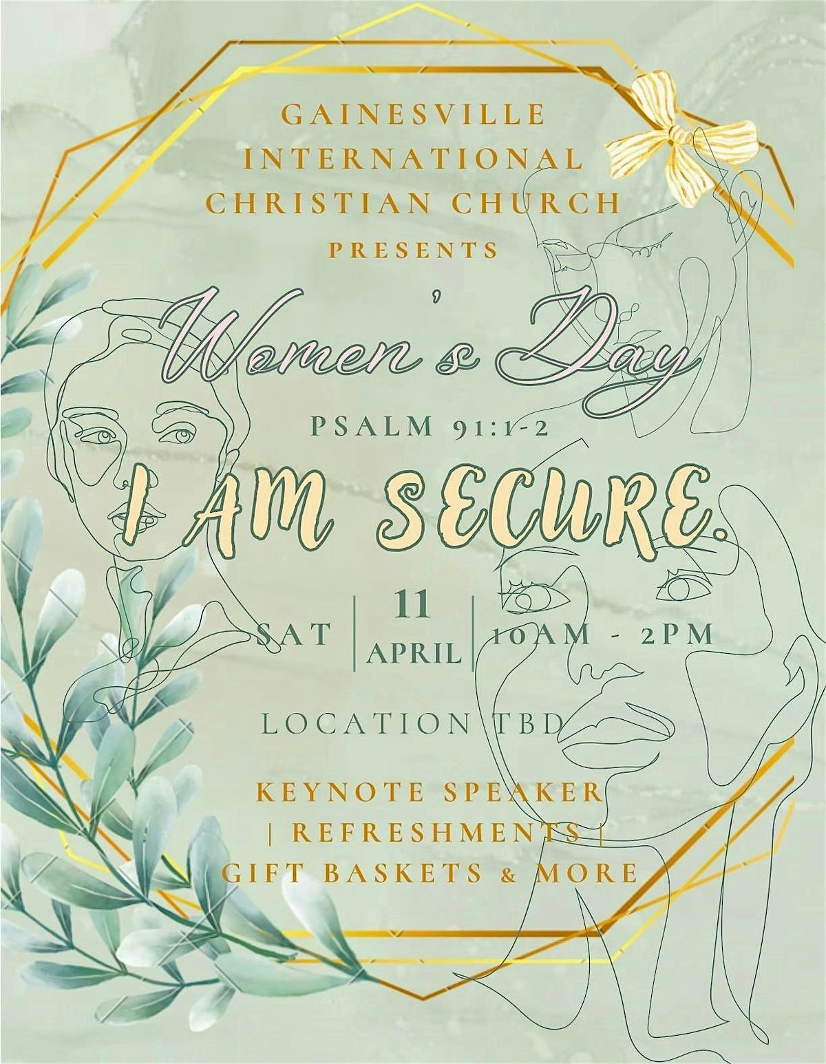Hosted by Gainesville International Christian Church, I Am Secure Women’s Day is an opportunity to be encouraged, connect with other women of faith, and walk away renewed and confident in your purpose.
