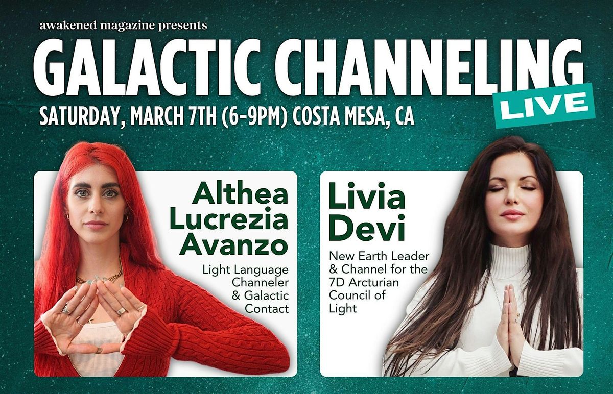 Presented by Awakened Magazine, GALACTIC CHANNELING LIVE brings together two internationally renowned channelers—Althea Lucrezia Avanzo (South Africa) and Livia Devi (Romania)—for a rare evening where cosmic wisdom is experienced, not just explained.