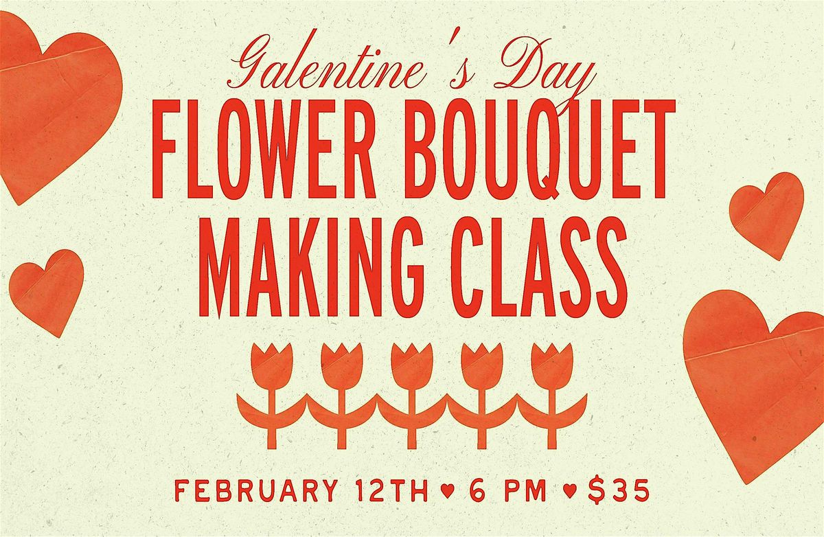 Grab your gal pals and join us for a fun night of flowers and V-day Vibes! 2/12, we will be hosting a Galentine's Day Flower Bouquet Making Class led by the talented florist at Fraya Rose Designs. Your $35 ticket includes all supplies and flowers to make a beautiful bouquet and a welcome drink.