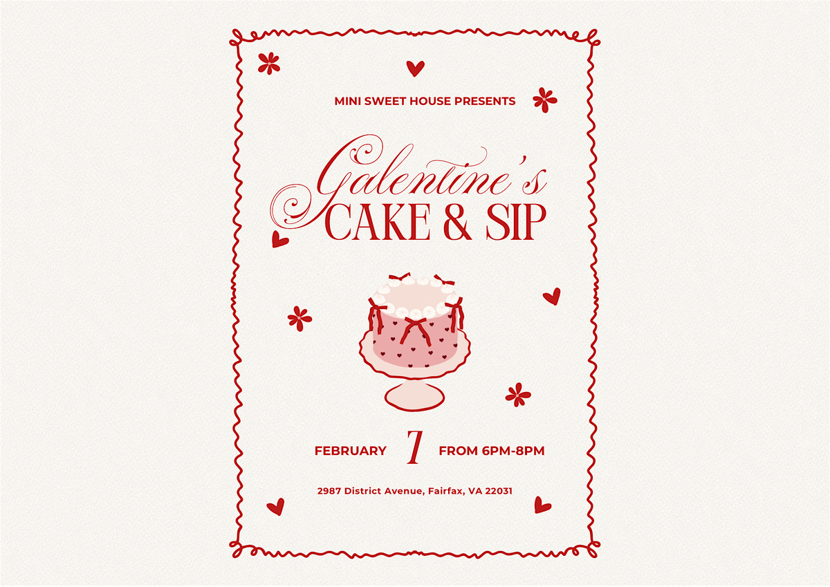 Ready for a fun in-person hangout? Join us for Galentine’s Cake & Sip — an awesome chance to indulge in delicious cake and sip on your favorite drinks with your besties. Come celebrate friendship, laughter, and sweet treats in a relaxed, cheerful atmosphere. Don’t miss out on this perfect day to treat yourself and share some smiles!