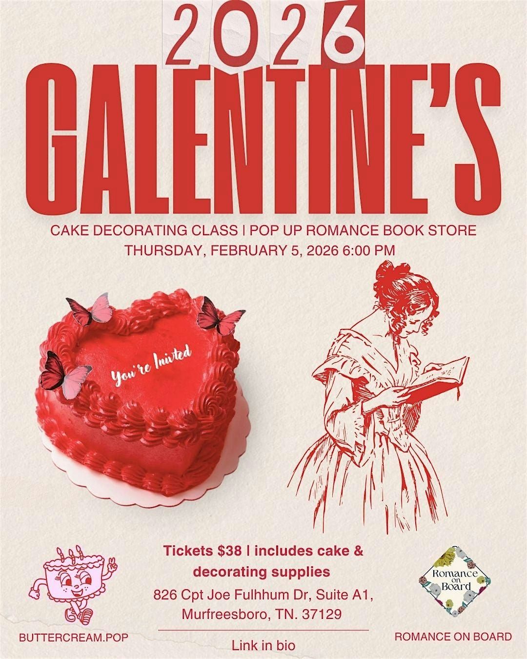 Galentine\u2019s Cake Decorating + Romance Book Pop-Up