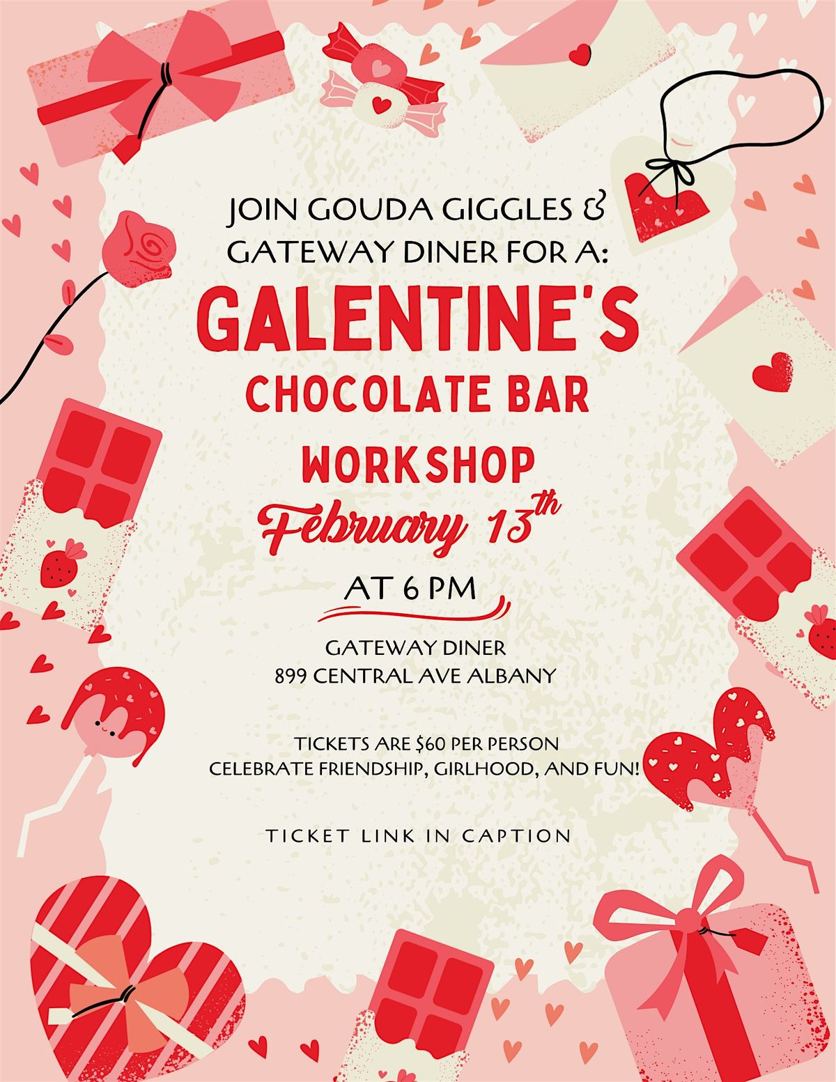 Celebrate Galentine’s Day with something sweet and unforgettable at our Galentine’s Chocolate Bar Workshop 🍫💖 at Gateway Diner on February 13th at 6 PM.