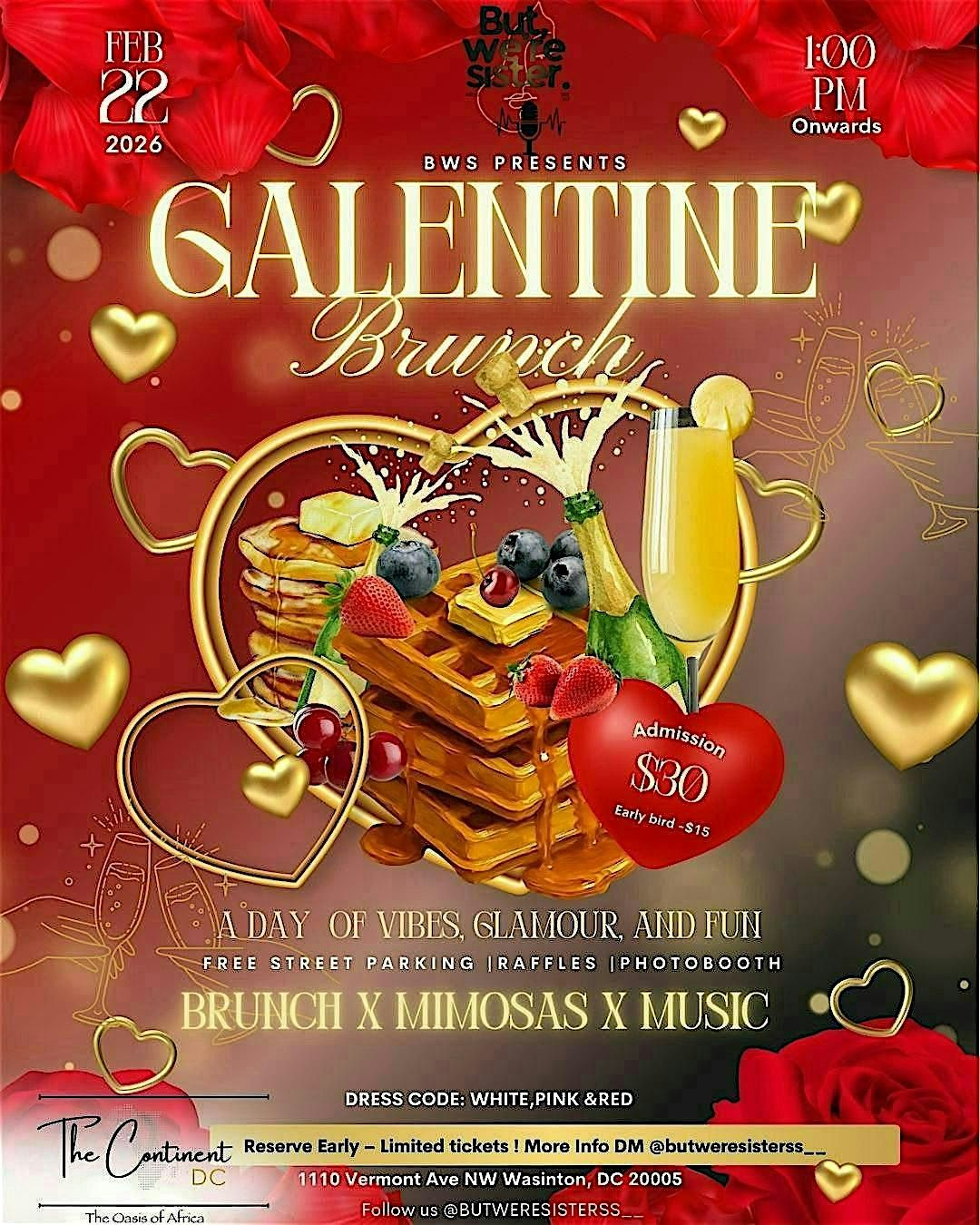Ready for a fun and fab in-person brunch? Join us to celebrate Galentine’s Day like never before with the debut of this special collab between BWS Podcast and The Continent DC. Experience an upscale All-You-Can-Eat brunch at The Continent DC featuring live DJs, a soulful Saxophonist, and our signature 'Galentine's' Cocktails. Expect great vibes, tasty bites, and awesome company as we toast to friendship and good times. The first 10 guests receive a complimentary glass of champagne! Don’t miss out on this unique gathering — it’s all about celebrating YOU and your crew!