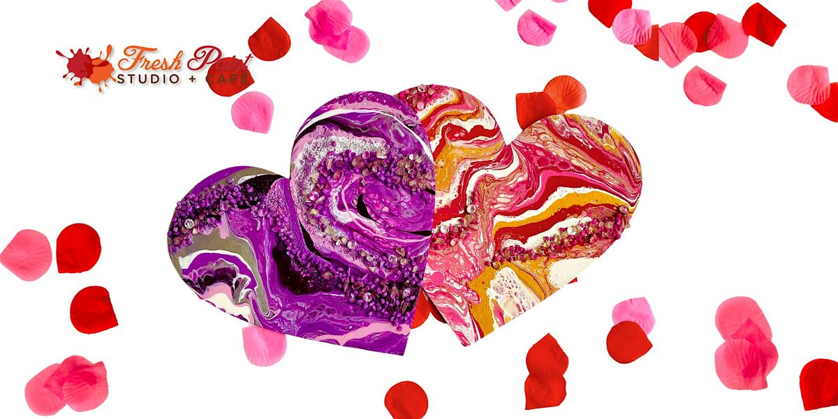 Galentine’s Day Paint Night – Heart-Shaped Gem & Geode Acrylic Paint Pouring Workshop in Toronto – A Gem-Inspired Paint Night